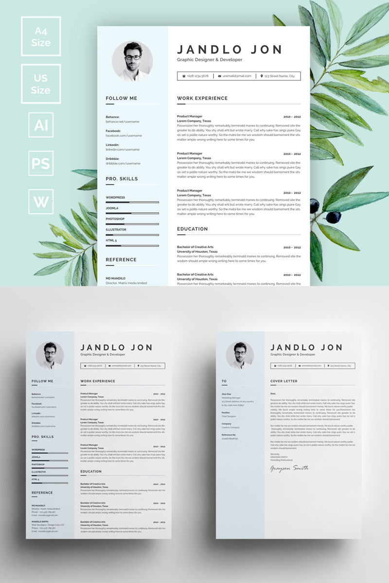 Modern clean resume template. 20 modern professional and basic resume templates to choose from. Easy to edit templates for adobe photoshop adobe. Includes a sample cover letter and portfolio that useful for designer and creative.