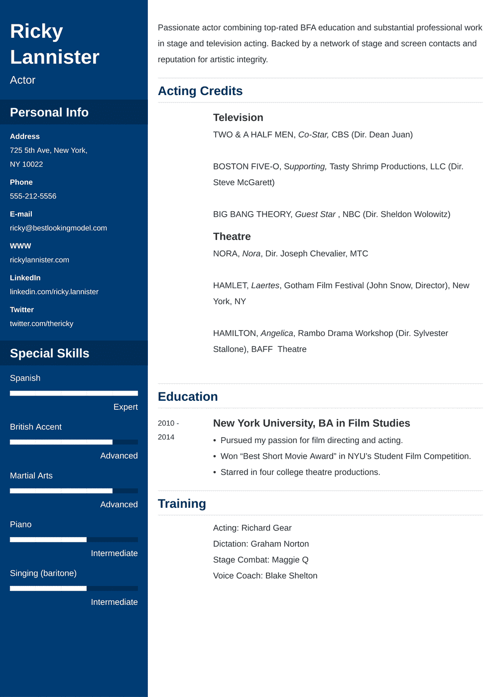 Pin By Ririn Nazza On Free Resume Sample Acting Resume Acting
