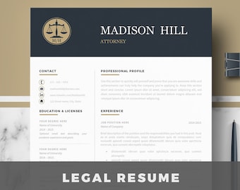 Legal Resume Template Lawyer Resume Attorney Resume Etsy