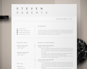 Minimalist Resume Template Word Professional Resume Cv Etsy