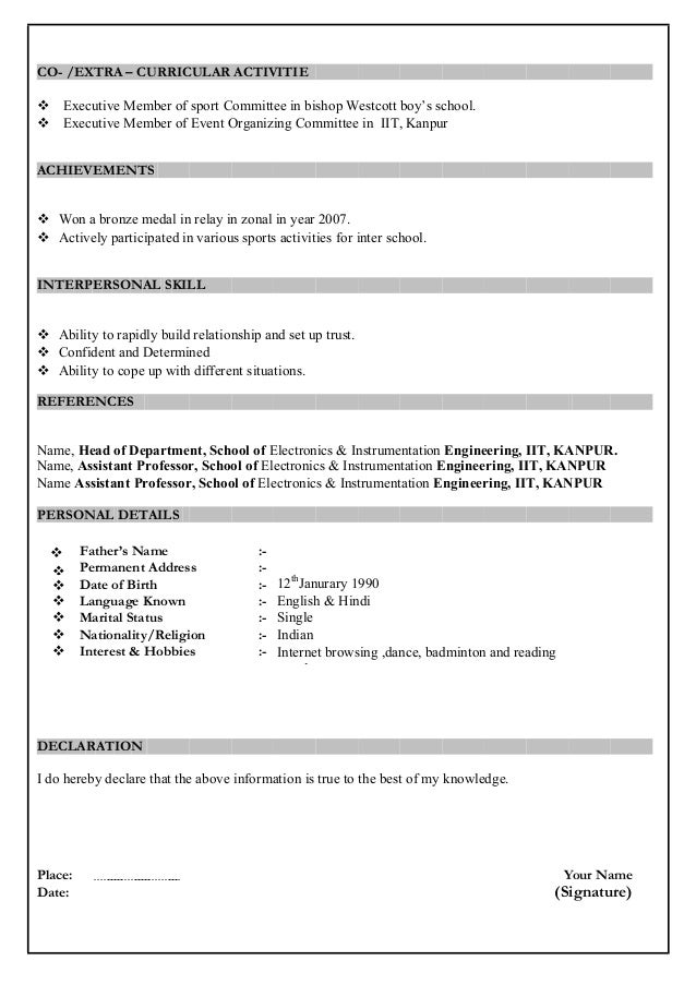 Indian Resume Format For Freshers Resume Ideas
